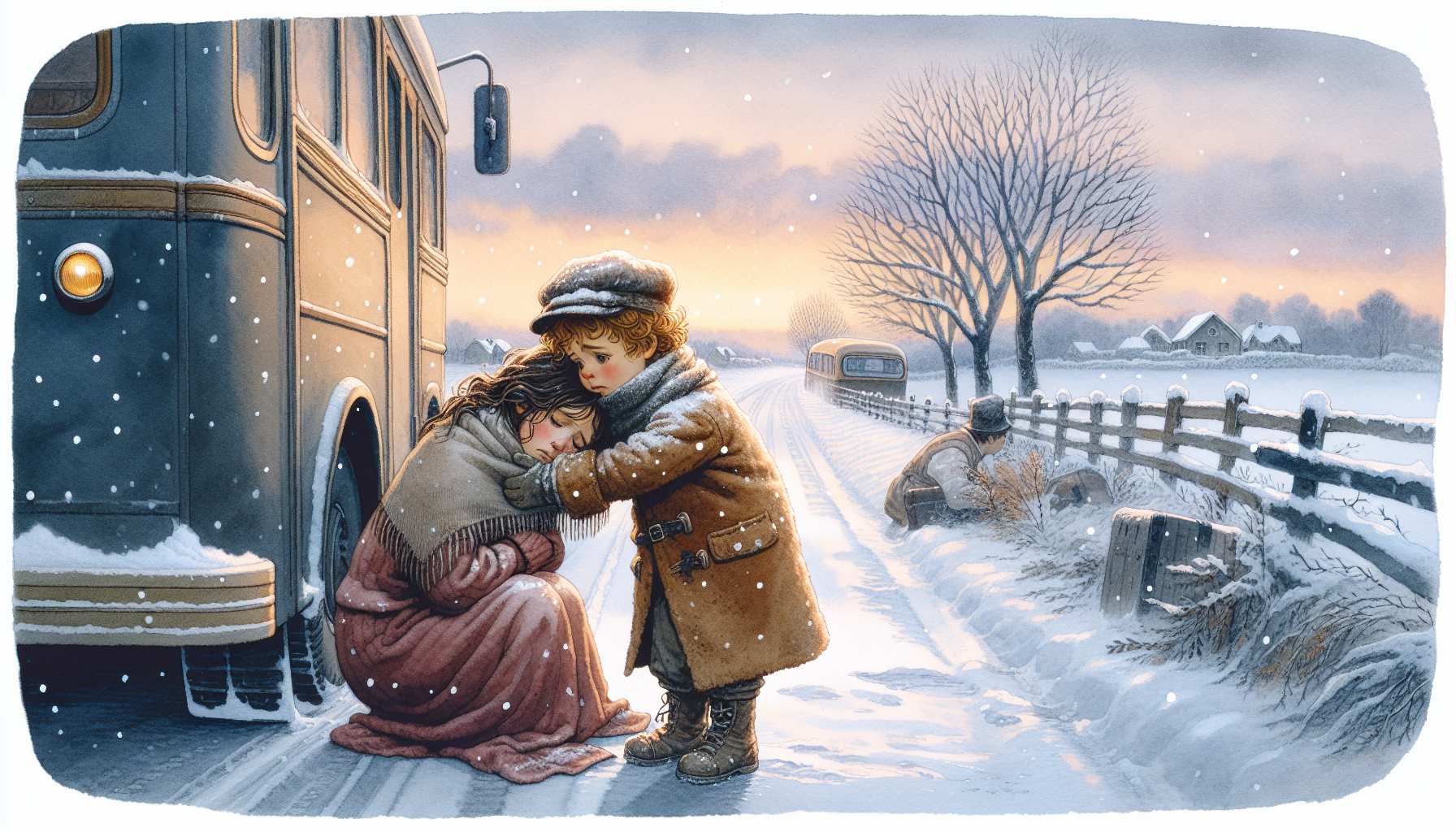 ბიჭი თავჩაღუნული იდგა ავტობუსთან. მერე ნელი ნაბიჯით თოვლში მოკუნტულ დედინაცვალს მიუახლოვდა. ერთხანს დარცხვენილი უცქერდა ატირებულსა და ერთიანად აკანკალებულ ქალს და შეეცოდა, ძალიან შეეცოდა. უნდოდა, რამე სანუგეშო ეთქვა მისთვის, მაგრამ ვერ შეძლო. უცებ პატარა ხელები კისერზე მოჰხვია და მიეხუტა, მიეხუტა და გაოცდა ბიჭი: თბილი იყო დედინაცვალი, დედასავით თბილი.