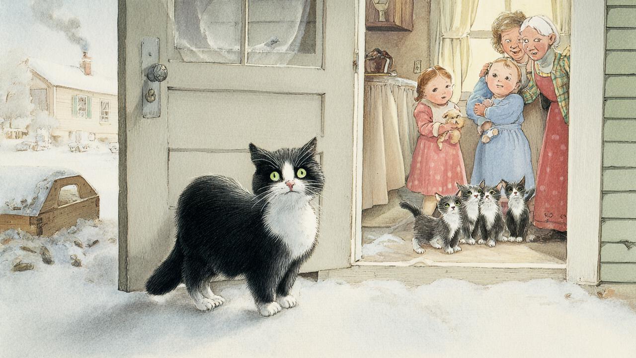 ... მაგრამ ამ ამბიდან ერთი თვის შემდეგ მელანო გამოგვეცხადა და ყველას გული მოინადირა. არავინ იცის, საიდან მოვიდა. როცა სტუმრები გავაცილეთ, მაშინვე საჩუქრების თვალიერებას შევუდექი. უცებ ორ სათამაშო დათუნიას შორის რაღაც შავ-თეთრი გამოძრავდა. მას მშვიდად ეძინა და მე გახარებულმა, რა თქმა უნდა, ვიფიქრე, რომ ის ალბათ რომელიმე სტუმარმა საჩუქრად მომიყვანა, მერე კი გავარკვიეთ, რომ ეს ასე არ იყო.