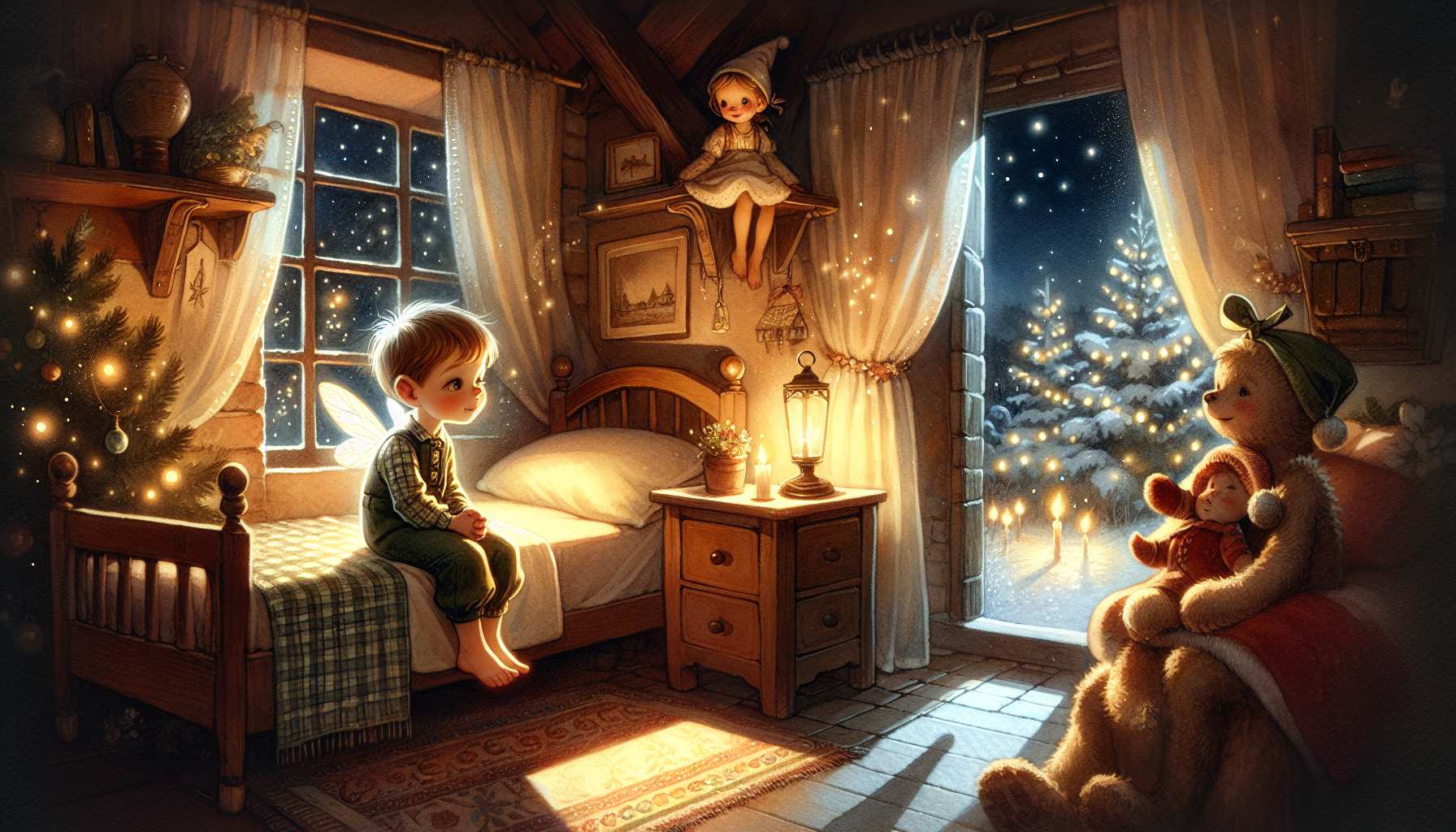 ერთ ბავშვთა სახლში ერთი მეოცნებე ბიჭი ცხოვრობდა. სხვაზე ზრუნვას, რომ მორჩებოდა, მერე ოცნებობდა და ოცნებობდა. ახალი წელი ახლოვდება, გაიფიქრა ბიჭმა, იქნებ ჩემი ოცნებაც ახდეს... ნეტავ, დედიკო და მამიკო მომაკითხავდეს და გულში ჩამიკრავდეს... ნეტავ, ჩემმა მშობლებმა ჩემი აქედან წაყვანა შეძლონ... ნეტავ, ერთ დღეს თბილ და ლამაზ სახლში გამაღვიძა დედიკო და მამიკოსთან ერთად... ამ ოცნებებში იყო პატარა ბიჭი, როცა მის თვალზე ერთმა ცრემლმა გაიბრწყინა და ამ დროს მოულოდნელად მის ოთახში უცნაური ხმა გაისმა: