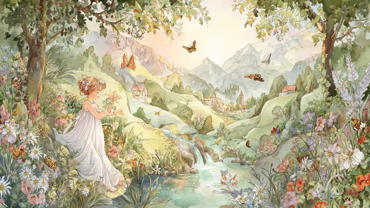 სიხარულით ფრთებშესხმული ნეტა უკვე კიბეებზე ჩარბოდა. როგორც კი ჭიშკარს გასცდა, ჭრელი პეპელა შენიშნა, რომელიც ყვავილიდან ყვავილზე დაფარფატებდა. გოგონა მისმა სილამაზემ ანდამატივით მიიზიდა და უკან გამოედევნა. ამ თამაშ-ფარფატში ისინი ტყეში შევიდნენ. მალე პეპელა თვალს მიეფარა, ნეტა კი ერთ პატარა წყაროსთან აღმოჩნდა. გახარებულმა გოგონამ ფეხსაცმელები გაიხადა და ჩვეული სიკისკასით ანკარა გუბურაში შეტოპა.