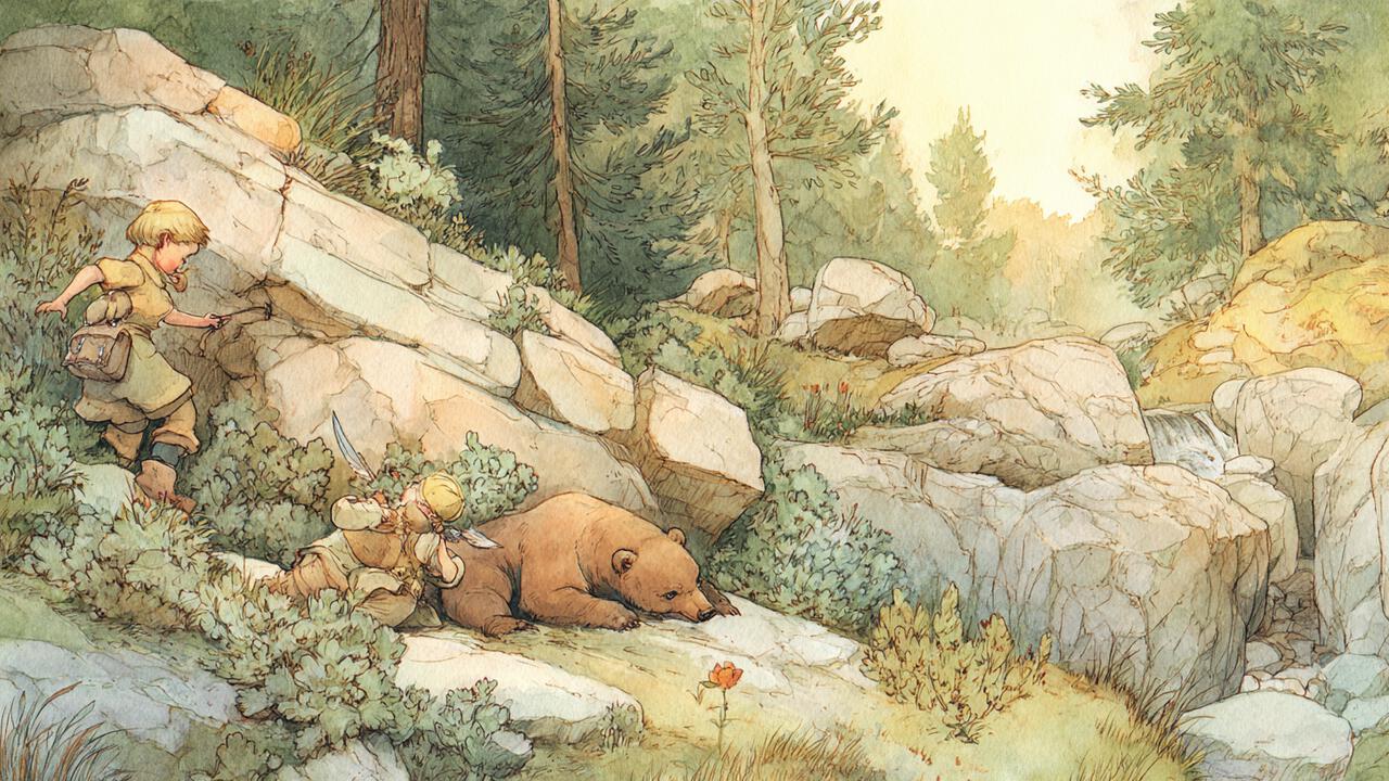 ერთს ამხანაგს დათვი შემოეჭიდა. ქვეშ ჩაიდვა.