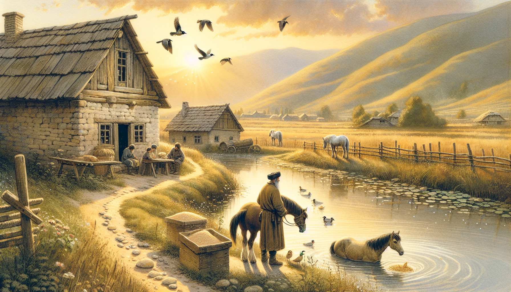 მოვიდა კაცი იგი, სოფლის პირს დაწვა. საბძელზე ყვავი შემოჯდა. მისი ბახალა თან მოჰყვა.
