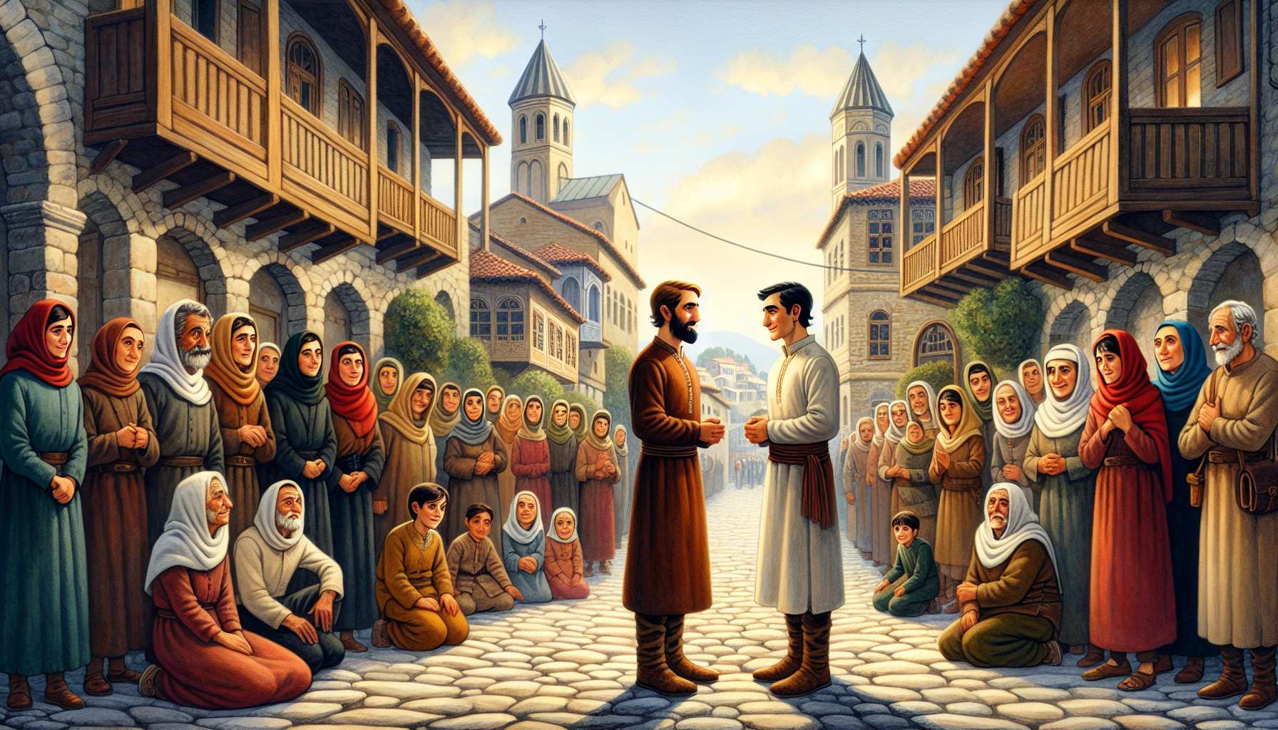 ორნი კაცნი იყვნენ ქალაქსა ერთსა. ერთი წამდაუწუმ სულ ტიროდა და ერთი სრულობით იცინოდა, რომე მოწყენილს ვერავინ ნახევდა.