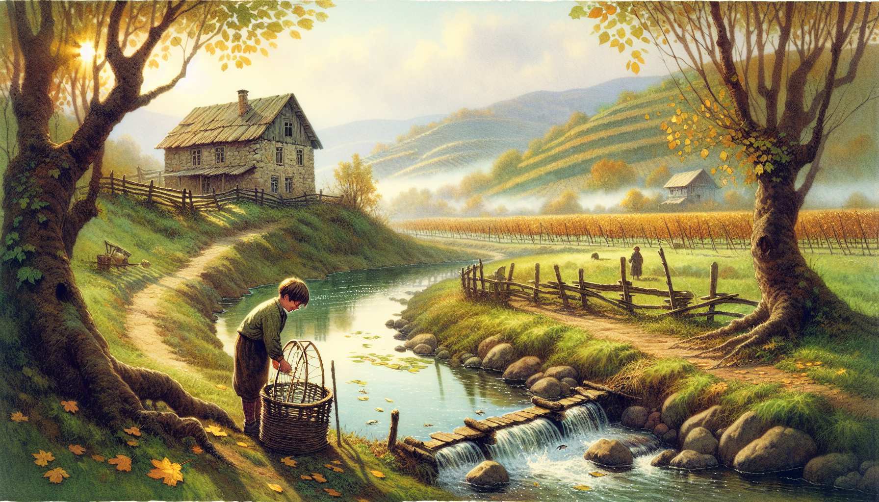 შემოდგომაზე, ყვითელ ოქტომბერში, ამოიტანდა ბებია ვედროებით არხის წყალს და მეტყოდა, - უკვე თოფოლი მოდის, თევზი ზღვისკენ დაიძრა, ამაღამ კოკოზა ჩაუგეო. მე პატარა, გამხდარ, დიდთავა ბიჭს - სიხარულის ჩოჩქოლი შემიდგებოდა. მზის ჩასვლისას დერეფნის ბუხარში დანთებულ ცეცხლზე გავახურებდი ნალისოდენა ხმელ პურს. ჩავიტანდი კოკოზას არხთან, ჩავაწყობდი შიგ, სიმძიმისათვის, ქვებს, დავუგმანავდი ბალახის ბღუჯით ბოლოს, გავუხლართავდი წნელსაც, გახუხულ პურს კოკოზის საძრომში ხელშეყოფილი ჩამოვკიდებდი ჩანგალივით დაკიდებულ მავთულზე, კარგად ჩავიდოდა მზე, ერთს ვიტყოდი, - ღმერთი და ბედო! - კოკოზას ფრთხილად ჩავუშვებდი წნორის ფესვებთან, დამდორებულ წყალში (პირთავქვე, მცურავი რომ არ შესულიყო შიგ) და ორი წნელით მივაბამდი ფესვებზე.