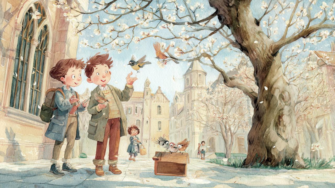 - ჩიტებს, - თქვა ბიჭმა და ყუთის პატარა ჭრილიდან ტანმოხატული გულწითელა ჩიტი ამოიყვანა.