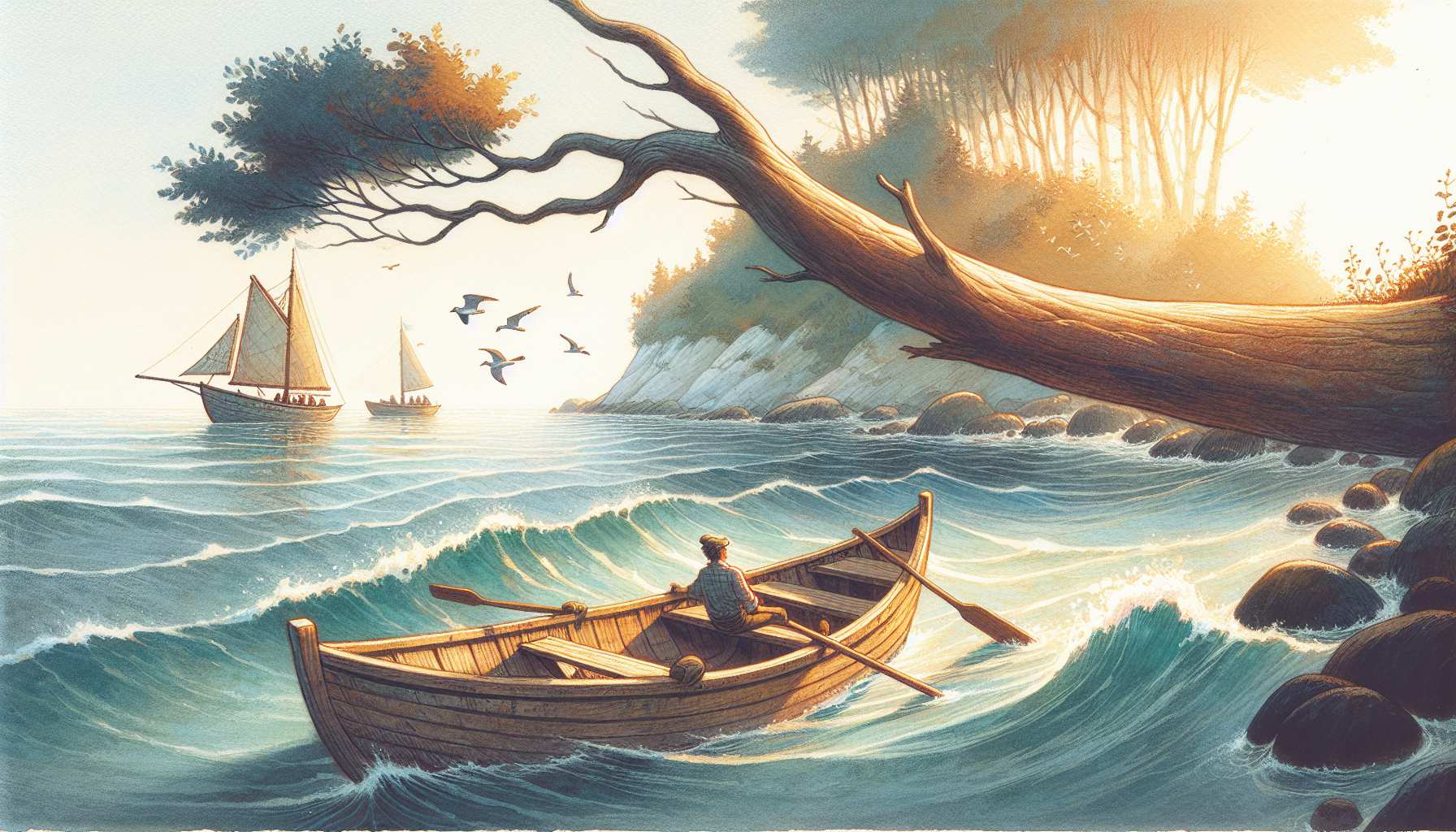 ეს სასწაული იყო! ის ზღვაში მიცურავდა! გვერდით პატარა გემმა ჩაუარა და საყვირით მიესალმა. თავზე თოლიებმა გადაუფრინეს. მისმა პატრონმა წყალს ნიჩბები მაგრად მოუსვა... ხე წყალზე მსუბუქად გასრიალდა...