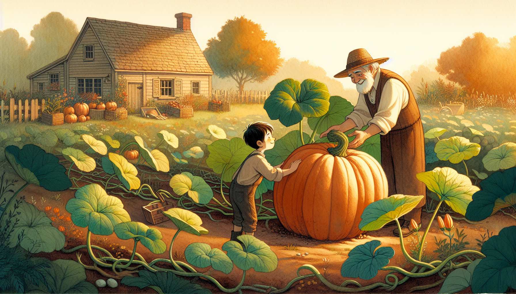 გიგა გოგრას უვლიდა და აკვირდებოდა. გოგრა სწრაფად იზრდებოდა. მისმა მსხვილმა ღერომ და ფართო ფოთლებმა ლამის მთელი ბოსტანი გადაფარა. გაკვირვებულმა ბიჭმა გიგა პაპას უთხრა: