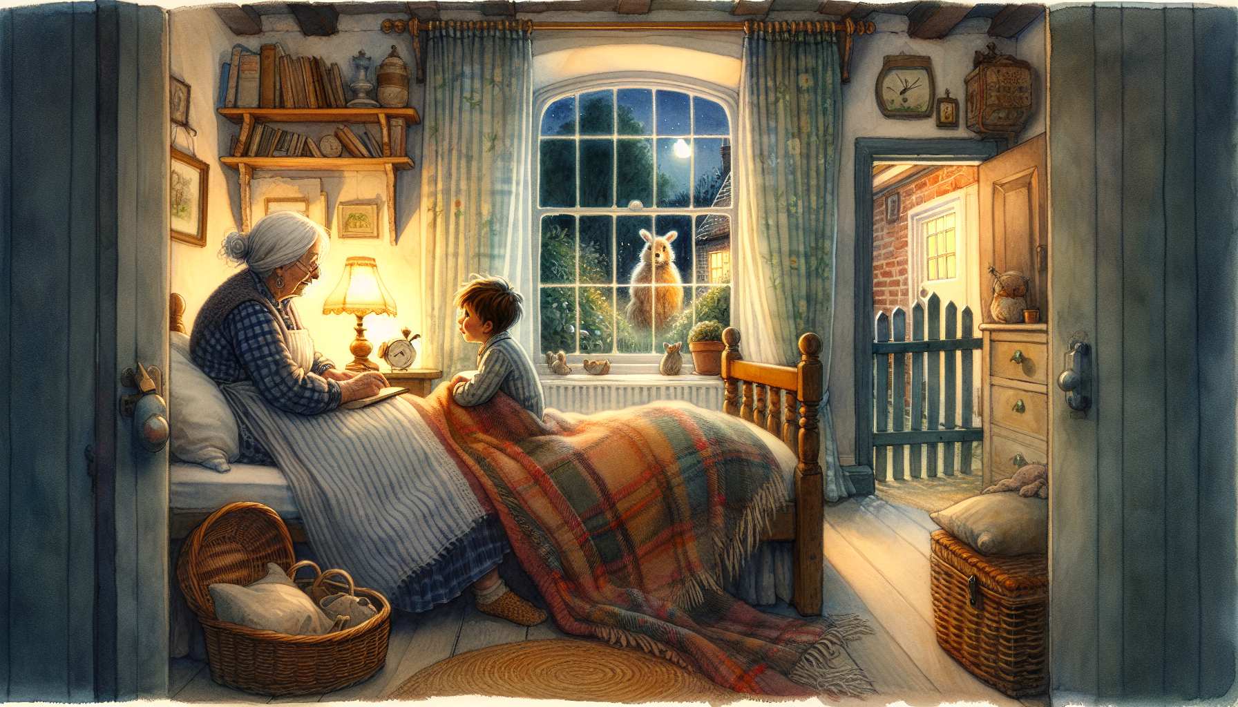 ბებია საბნის კალთებს უკეცავს, შუბლზე კოცნის და ეუბნება: