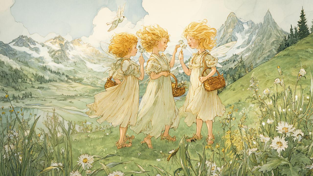 ტყიდან სამი კეთილი ფერია გამოვიდა. თანთ ბაბუაწვერას ბეწვისგან მოქსოვილი მსუბუქი კაბები ეცვათ, თავზე საპოვნელებისგან დაწნული გვირგვინები ეხურათ და მხრებზე ოქროსფერი თმები მზის ჩინჩხლებივით ჰქონდათ ჩამოშლილი. ნეკერჩხლის ფოთლებისგან შეკერილი ფაჩუჩებით ისე მსუბუქად მოდიოდნენ, თითქოს მიწას ფეხს არც აკარებენო.