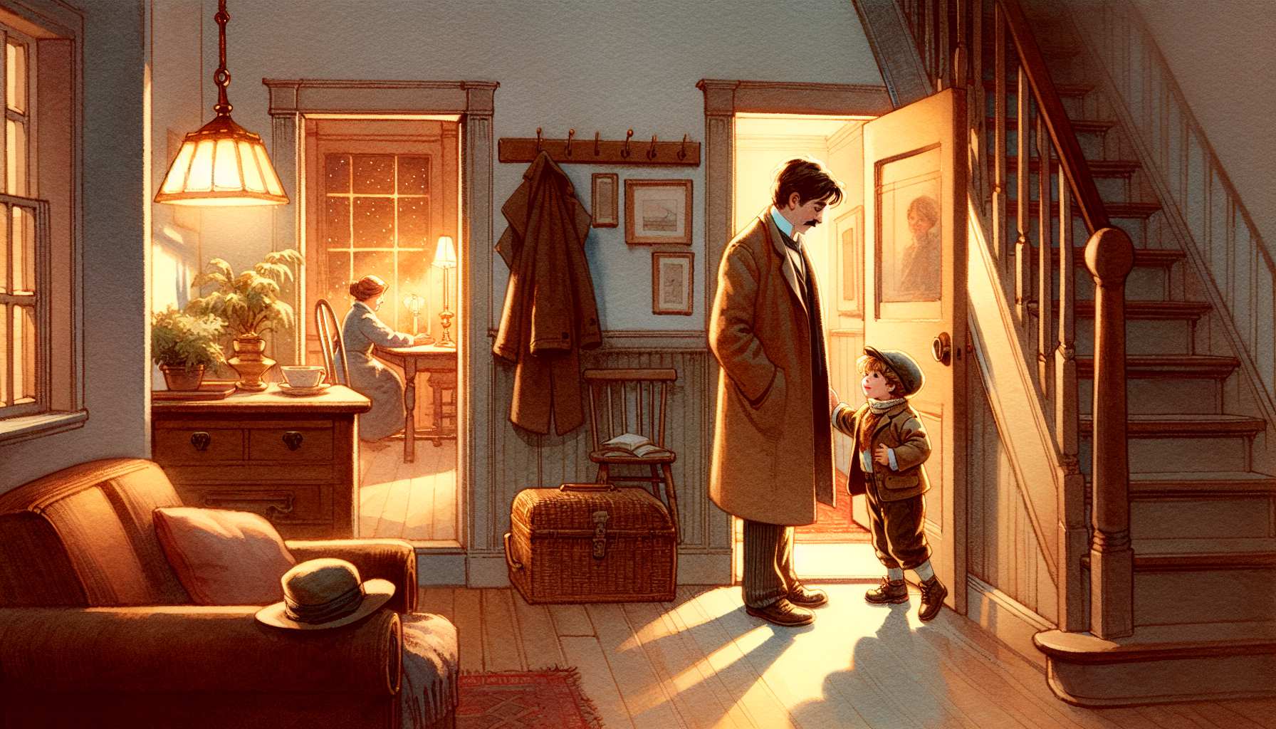 დაღლილი დაბრუნდა საღამოს მამა სამუშაოდან. ოთარიკო მოუთმენლად ელოდა მის მოსვლას და კიბეზე მიეგება, მაგრამ შეხედა თუ არა, მაშინვე ჰკითხა: